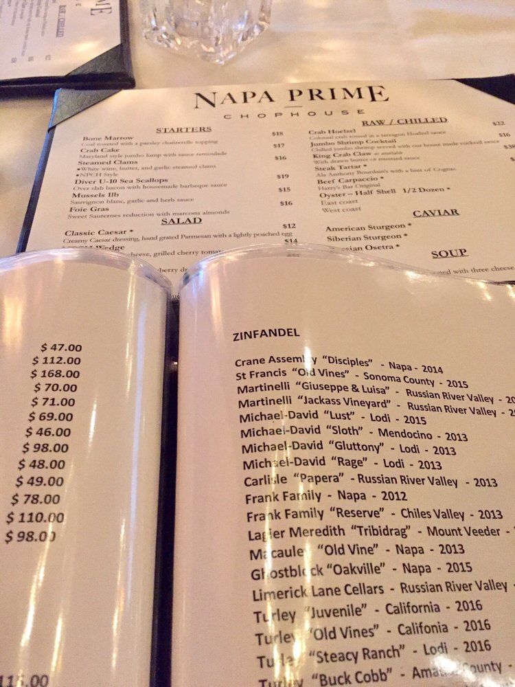 Napa Prime Chophouse Menu